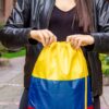 Tricolor Mochila con cordón para ajustar y cargar. Con refuerzo en las esquinas.