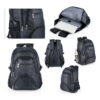 Morral con bolsillo principal cierre doble cremallera con compartimiento interior apto para portátil de hasta 19”, bolsillos laterales en malla optimos para cables, audífonos o bebidas; cargaderas ajustables y acolchadas, 4 bolsillos frontales con cierre de cremallera. Morral con refuerzo clip tipo cinturón.