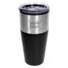Ø 8,5 x 18 cm. Capacidad 600 ml. Plástico y acero inoxidable. Doble pared. Interior de polipropileno (PP) y exterior combinado con acero inoxidable 201. Tapa transparente con seguro antiderrame Presentación en caja de regalo.