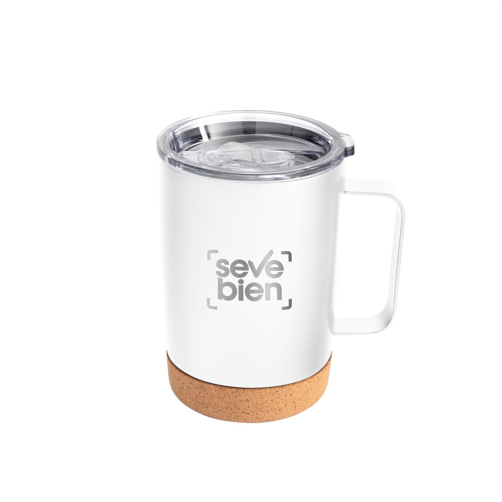 Diseño elegante con base de corcho.Mug doble pared con asa, sellado al vacío. Mug con aislamiento térmico. Tecnología vacuum. Interior en acero 304 y exterior en acero 201. Tapa de poliestireno con anillo de silicona. Asa metálica. Base de corcho. Pintura acabado semi mate. Mantiene hasta 6 hs la temperatura de las bebidas calientes y hasta 10 hs la de las bebidas frías.Medidas: Ø 8,5 cm x 13 cm. (no incluye asa)