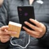 Multicargador fabricado con RPET y bambú con entrada Tipo C y salidas Tipo C y USB. Diseño innovador y atractivo. 5.000 mAh