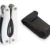 Multitool con cortafríos, destapador, 2 destornilladores planos phillips, sierra, navaja y lima. Estuche en lona con cierre en velcro.