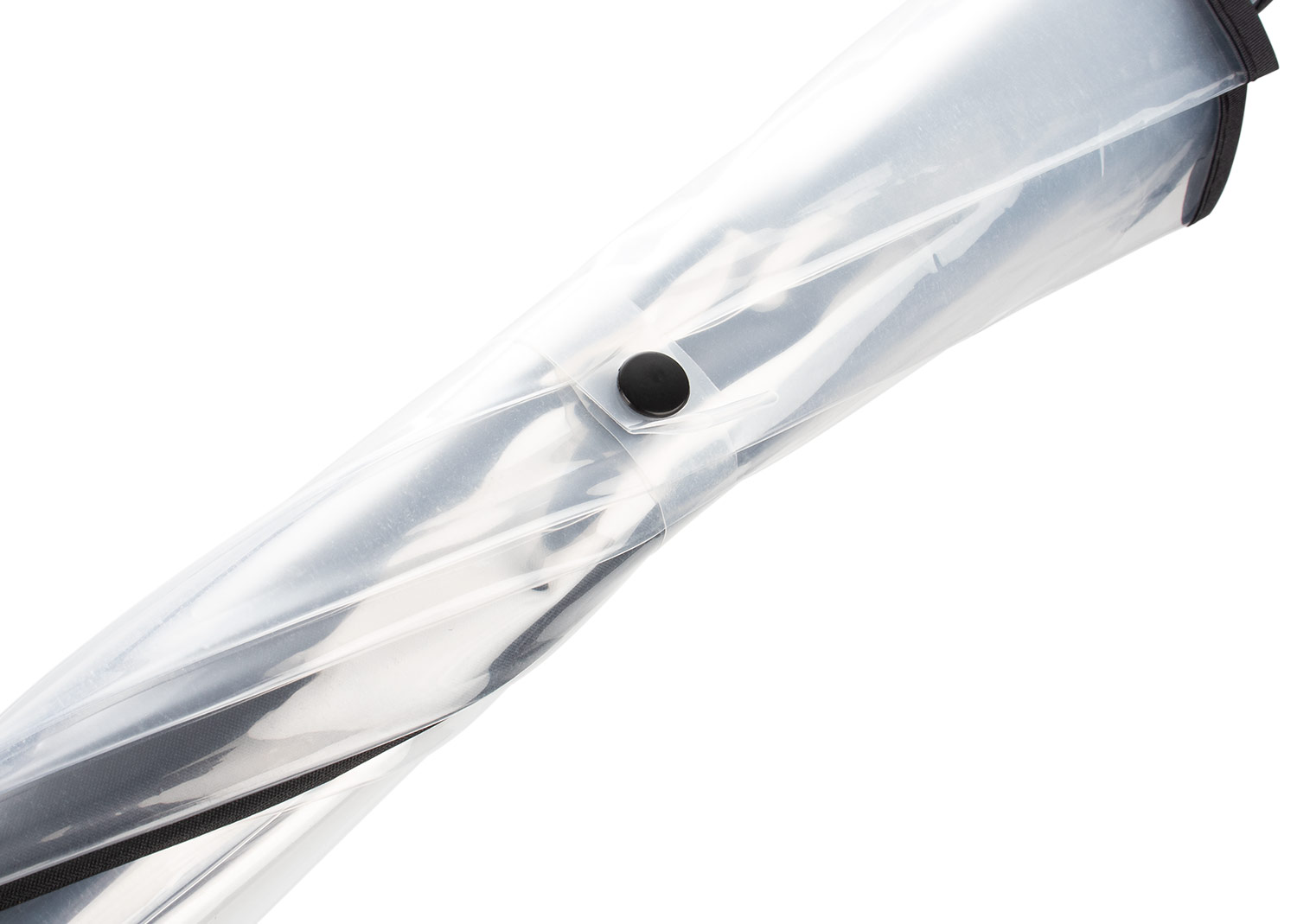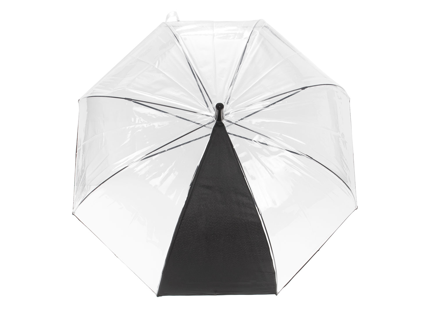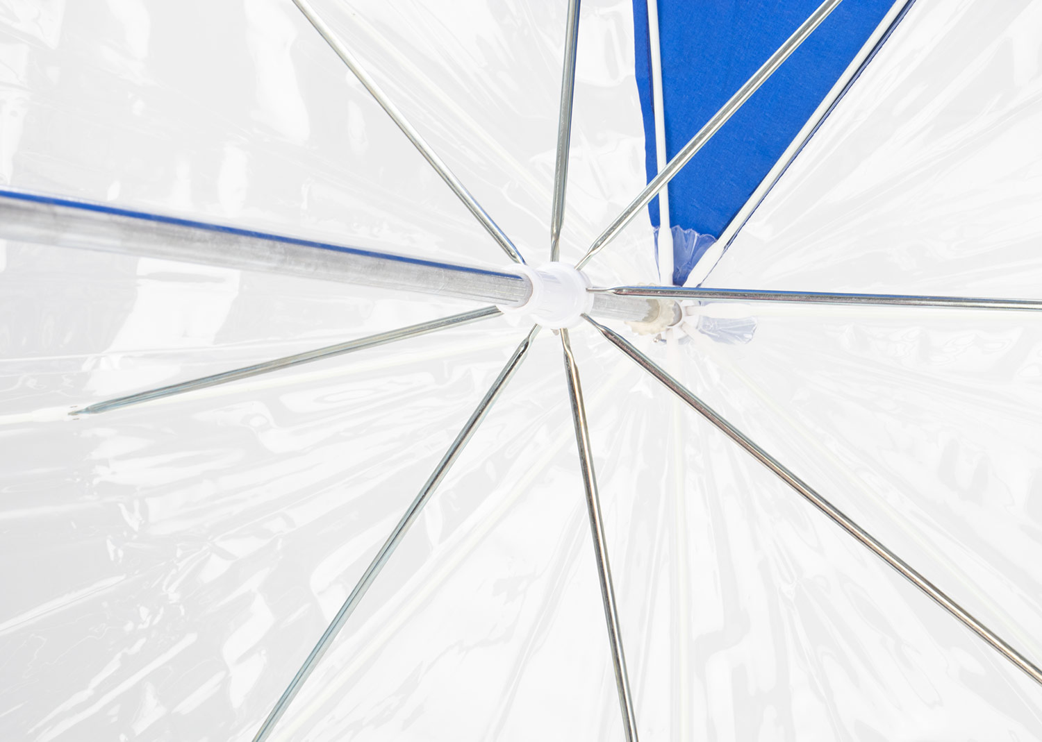 Paraguas de 23″ con 8 cascos, diseño tipo Apolo de cúpula amplia que ofrece mayor cobertura. Apertura manual completa, estructura reforzada con marco de metal Zicify y varillas largas de fibra de vidrio para mayor resistencia al viento. Eje de metal cromado que aporta durabilidad y estilo. Cubierta en POE 10C transparente con un panel de tela pongee en color sólido, creando un contraste elegante. Mango de plástico con acabado de goma, ergonómico y en color a juego con la tela pongee, ideal para un agarre cómodo y seguro.