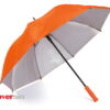 Paraguas tipo Golf con doble recubrimiento interior plateado. Apertura automática y cierre manual. Mango recto del mismo color de la tela.