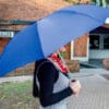 Paraguas reversible, 3 secciones, apertura y cierre automáticos, marco en fibra de vidrio y a prueba de viento. Antibrisa. marco en color negro, mango plástico. Tela pongee 190t. Incluye funda del mismo color del paraguas.