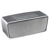 Bocina bluetooth con batería recargable de 2 horas de reproducción aproximadamente. Controles integrados de llamada, volumen y reproducción de audio. Entrada de tarjeta microSD, modo radio FM y función manos libres. Cable cargador USB incluido.