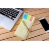 Incluye bolígrafo ecológico y notas adheribles: 100 en color beige y banderas de colores.