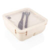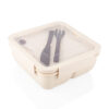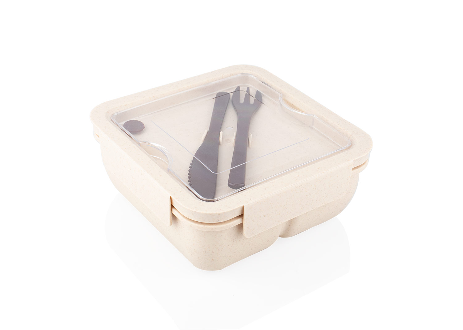 Fabricado en material de paja de trigo PP, con tapa transparente de PS. Incluye cuchillo (2,1 X 15,5) y tenedor (2,6 X 15,5) de PP, ideales para el uso diario. Su diseño con compartimentos permite organizar los alimentos de forma práctica. Una opción ecológica y funcional para transportar tus comidas, promoviendo un estilo de vida responsable con el medio ambiente.