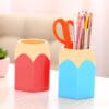 Portalápiz plástico en forma de lápiz. De 10 x 7.5 cm.