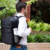 Morral portalaptop con espaldr ergonómico, bolsillo frontal, medio y principal con cremallera, el bolsillo principal tiene un compartimiento para dispositivos portatiles de 15″, 2 bolsillos laterales en malla, incluye una placa metalica para marca en láser