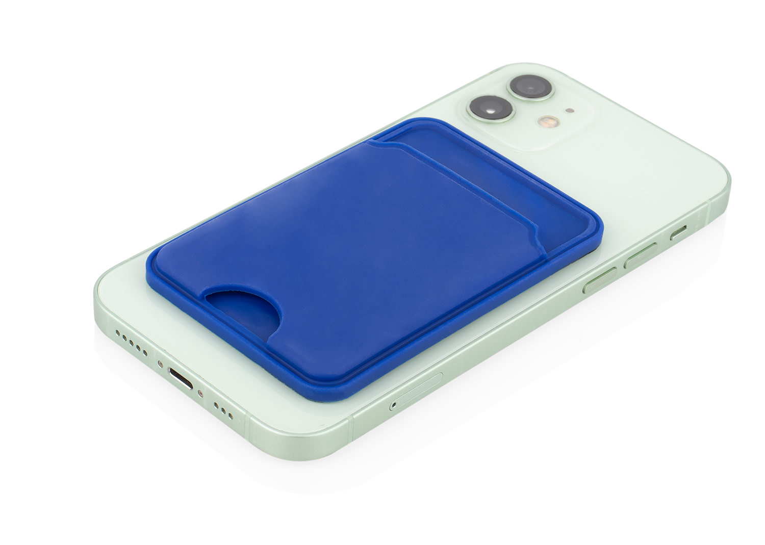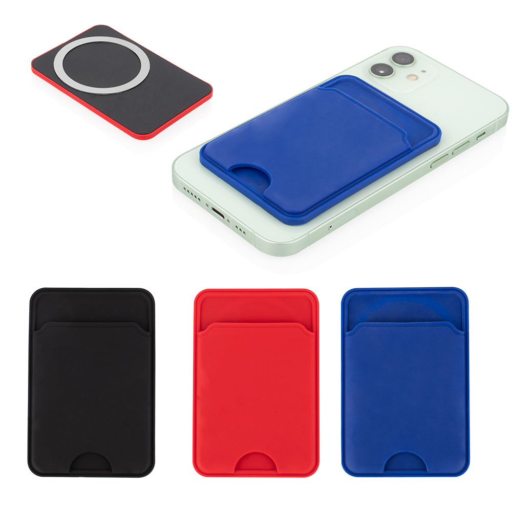 Tarjetero elaborado en silicona flexible, diseñado con tecnología MagSafe para adherirse directamente a la parte posterior del teléfono de manera segura y práctica. Ideal para llevar tarjetas esenciales sin necesidad de una billetera adicional, ofreciendo comodidad y funcionalidad en un diseño compacto y resistente.