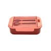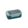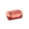 Contenedor para almacenar alimentos. Al interior cuenta con división para separar tu comida. Su tapa es con cierre hermético para evitar derrames. Incluye cuchara, tenedor de plástico y caja individual.