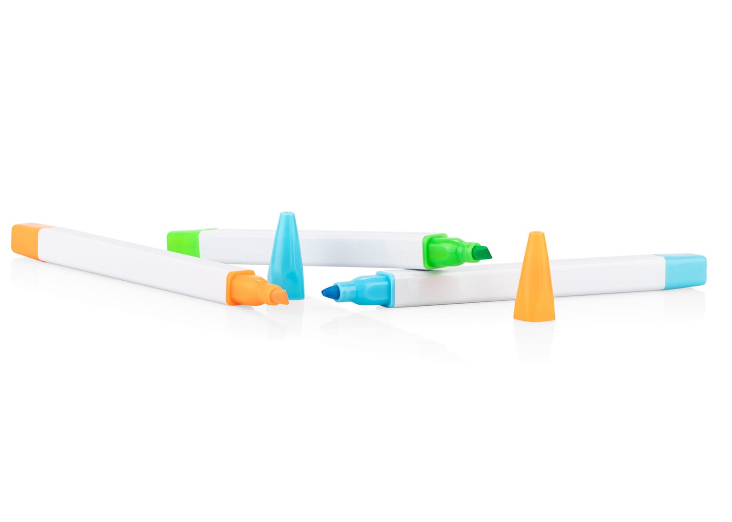 Juego de 5 resaltadores en estuche práctico, con colores vibrantes para destacar tus ideas. Cada resaltador permite extraer la mina retirando la tapa inferior, mientras que el estuche cuenta con un asa móvil para facilitar la extracción. Para guardarlos, simplemente presiónalos hacia abajo en su lugar. Ideal para organizar tu escritorio con estilo y funcionalidad.