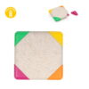 Resaltador con forma cuadrada, con 4 colores de tinta: verde, amarillo, naranja y rosado. Elaborado con paja de trigo.