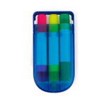 Set en estuche plástico de resaltadores en parafina x 3 unidades, no se secan.