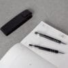 Bolígrafo y lapicera 0.5 mm. Mecanismo pulsador. Incluye estuche con imán para cerrado.