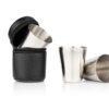 Set de 4 copas en acero inoxidable con práctico y llamativo estuche tipo cuero para transportar. Capacidad 30 ml.