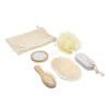 Lujo en tu rutina.Set de baño / Spa. Incluye: 5 accesorios de belleza y limpieza. Espejo de bambú (Ø 7,2 x 0,8 cm.); Cepillo de madera (12,5 x 3,7 x 3,5 cm.); Piedra pómez con cordón de algodón (9,5 x 4,5 x 2cm.); Esponja bola de red con cordón de poliéster (Ø 9 cm.); Esponja de mano con elástico, recubierta en algodón y tejido exfoliante (14,7 x 9,7cm.). Medidas: 14,5 x 20 cm.