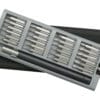 16,5 x 6,8 x 1,8 cm. Plástico y Acero. Mango con punta imantada con 24 puntas diferentes. La caja viene con cuatro compartimentos imantado que permite mantener ordenadas las diferentes puntas. La caja contiene apertura push.