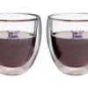 Ø 8 x 8 cm. Capacidad 220 ml cada vaso. Vidrio. Set de dos vasos doble pared. Apto para bebidas frías y calientes. Presentación en caja de regalo.