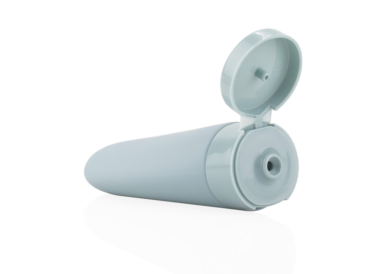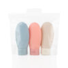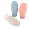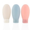 Set de botellas de viaje que incluye tres envases de 60 ml (5 X 10,8) con tapa de cierre a presión, ideales para transportar líquidos como shampoo, gel o loción; vienen en una bolsa transparente con sistema para colgar, lo que facilita su organización y acceso durante viajes o desplazamientos.
