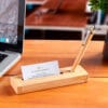 Bolígrafo y estuche de madera. Estuche con porta pluma y porta tarjetas.