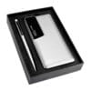 Incluye batería auxiliar de 10,000 mAh, con salida USB, entrada micro USB y tipo C, display para mostrar nivel de batería, bolígrafo con memoria USB de 8 GB con función OTG para transferencia de información entre dispositivos, compatibilidad USB / Micro U