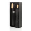 Set ejecutivo con estuche de lujo. Incluye botella de 600 ml (20 Oz) en acero inoxidable con tapa de rosca y banda de silicona para transportar con facilidad, además de un paraguas mini de 19″. Ambos elementos tienen un detalle en bambú para marcar con láser.
