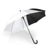 Paraguas de 23» sistema de apertura automática y cierre manual, 8 cascos, varilla metálica con recubrimiento negro, 190t tela pongee. Mago curvo plástico en PP curvo a juego con el color de la tela.