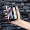 Con 6 espacios para tarjetas. Sistema anti robo RFID.