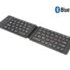 Teclado inalámbrico plegable, compacto y liviano. Compatible con sistemas Android, Windows e iOS. Alcance de hasta 10 metros y autonomía de más de 140 horas de uso continuo. Diseño magnético en el cierre que mantiene el teclado firmemente plegado para facilitar su transporte. Ideal para trabajar desde cualquier lugar.