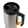 Doble pared. Pared interior plástico, pared exterior acero inoxidable. Incluye asa con carabina.