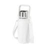 Termo doble pared. Cerrado al vacío. Pared interna y externa acero inoxidable y cuerpo con terminado tipo rugoso. Tapa de plástico con sistema de rosca, boquilla y botón de seguridad para mantener cerrado y sin derrames, incluye sobretapa metálica de rosca. Además, agrega un asa plegable de plástico y un asa de poliéster removible, que facilita su traslado. Mantiene la temperatura caliente por 10 hrs y la temperatura fría por 12 hrs. Capacidad de 40 Oz. Incluye caja individual.