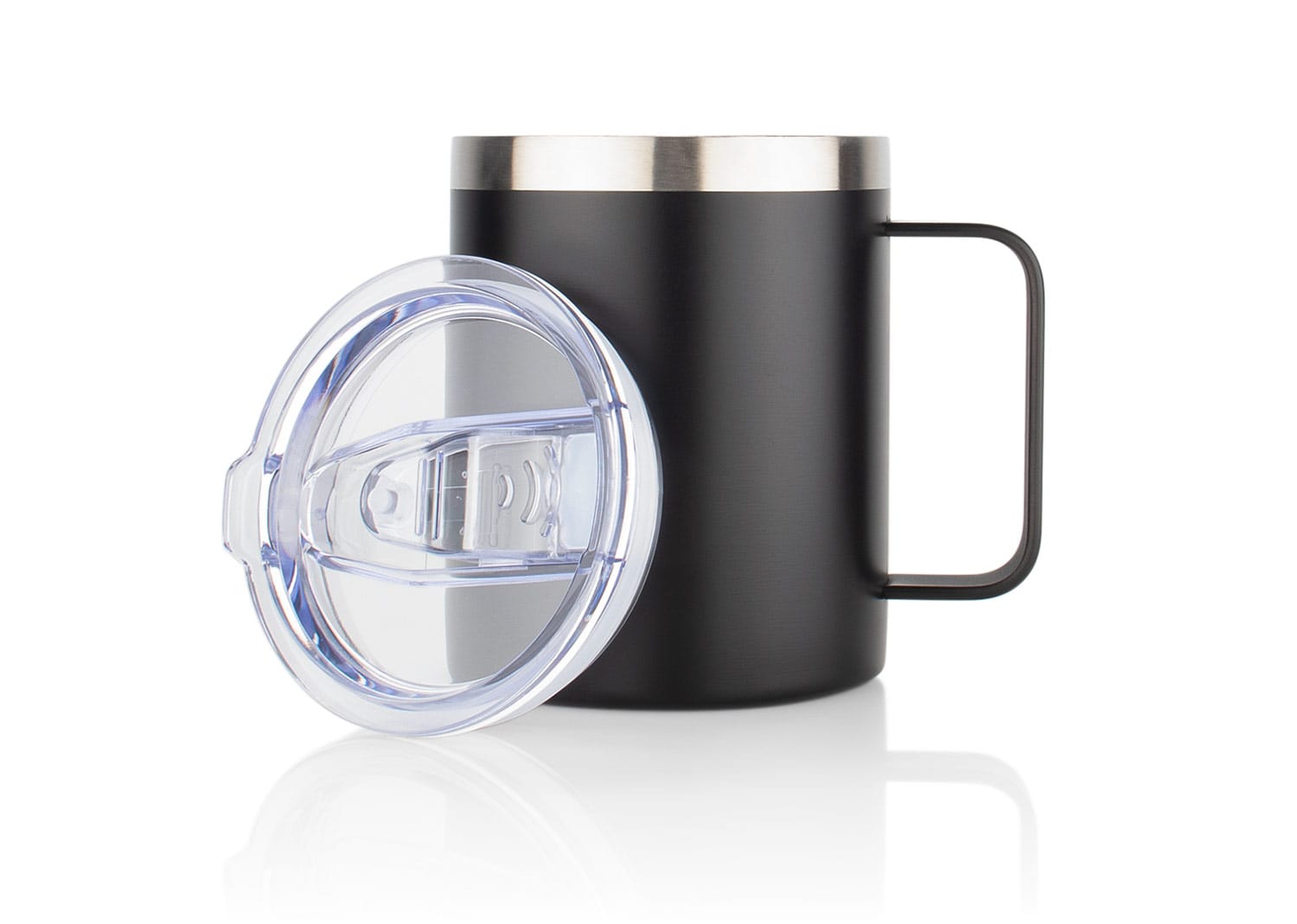 Mug térmico de doble pared con tapa de presión y boquilla con seguro corredizo. Diseñado para conservar la temperatura de tus bebidas, su tapa transparente se ajusta bajo presión y cuenta con un mecanismo de cierre deslizante para mayor seguridad. Capacidad: 380 ml / 13 Oz.