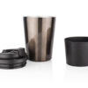Vaso fabricado en acero inoxidable, con tapa de cierre giratorio y boquilla con seguro a presión que facilita el consumo de bebidas de forma segura. En su interior cuenta con indicador de onzas para mayor precisión. Incluye banda para mejor agarre. No apto para microondas y se recomienda lavar únicamente a mano. Capacidad: 400 ml / 13 Oz.
